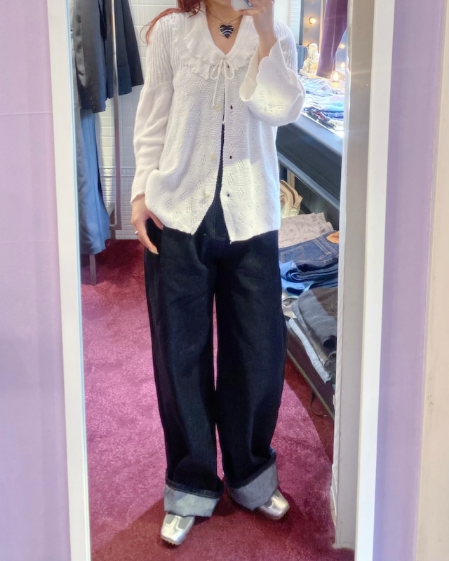 vintage ruffle color spring knit cardigan