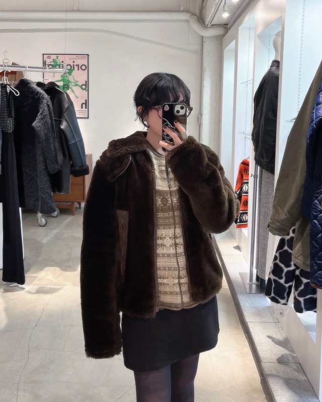 vintage rabbit fur × knit blouson