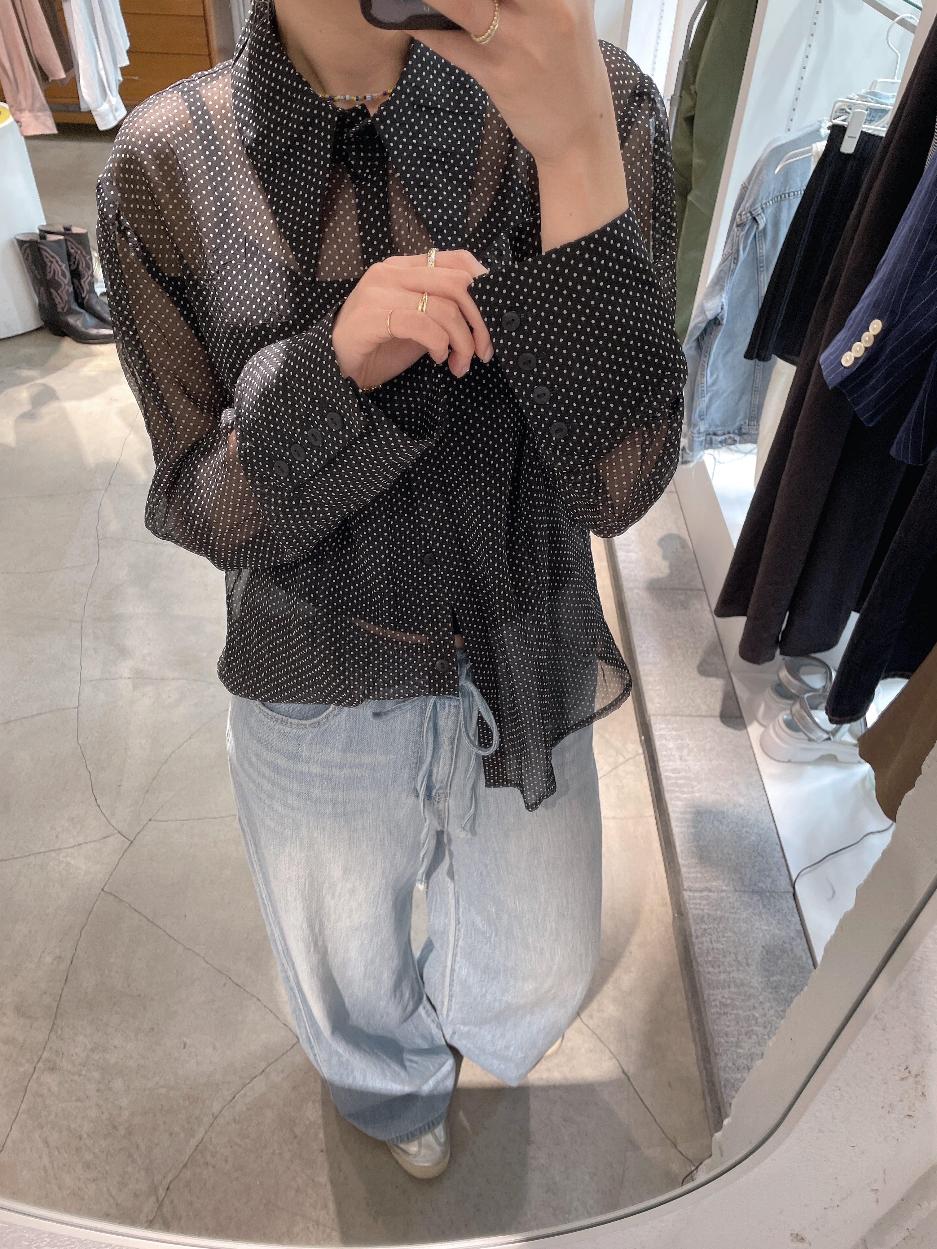 vintage sheer dot design blouse