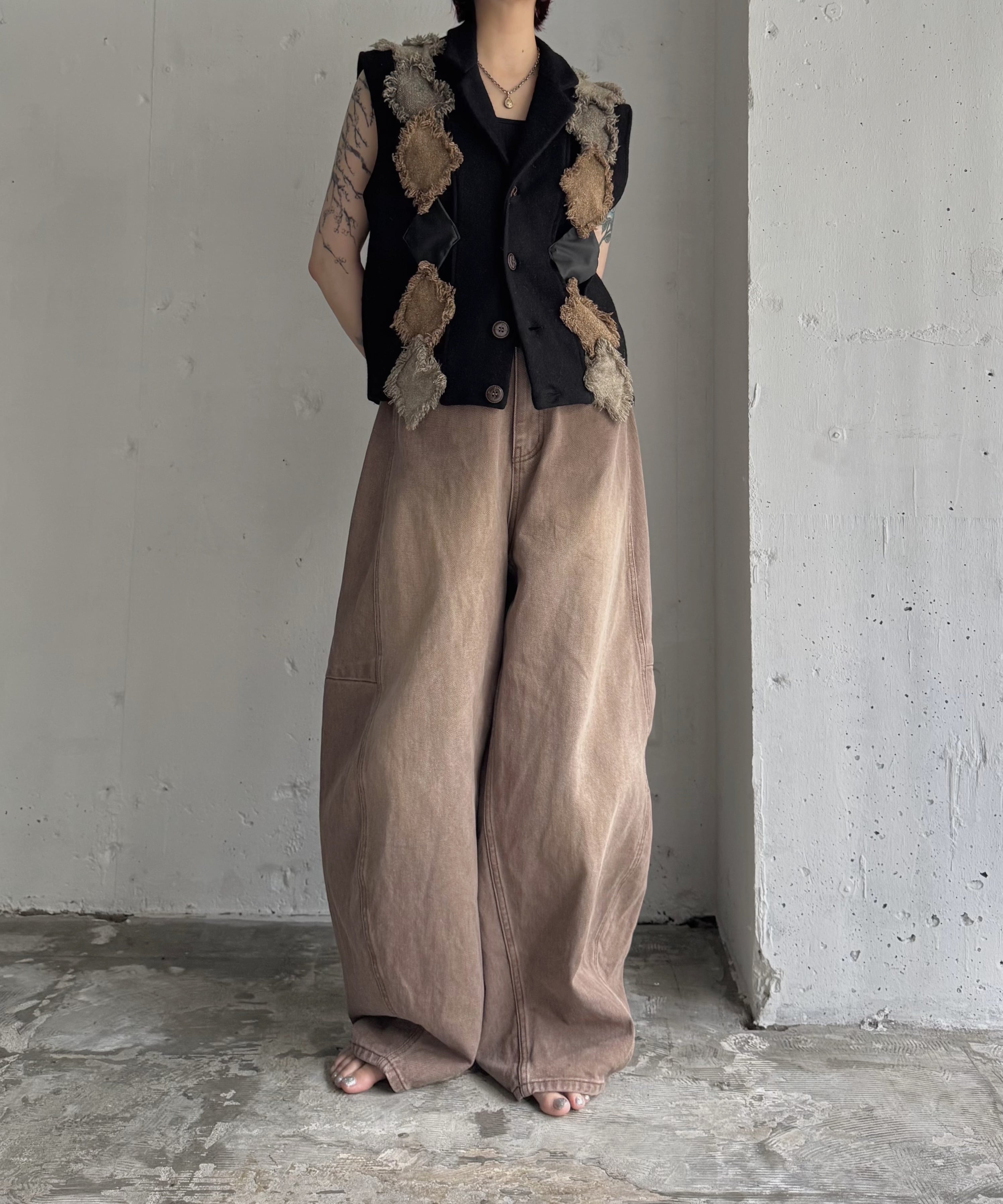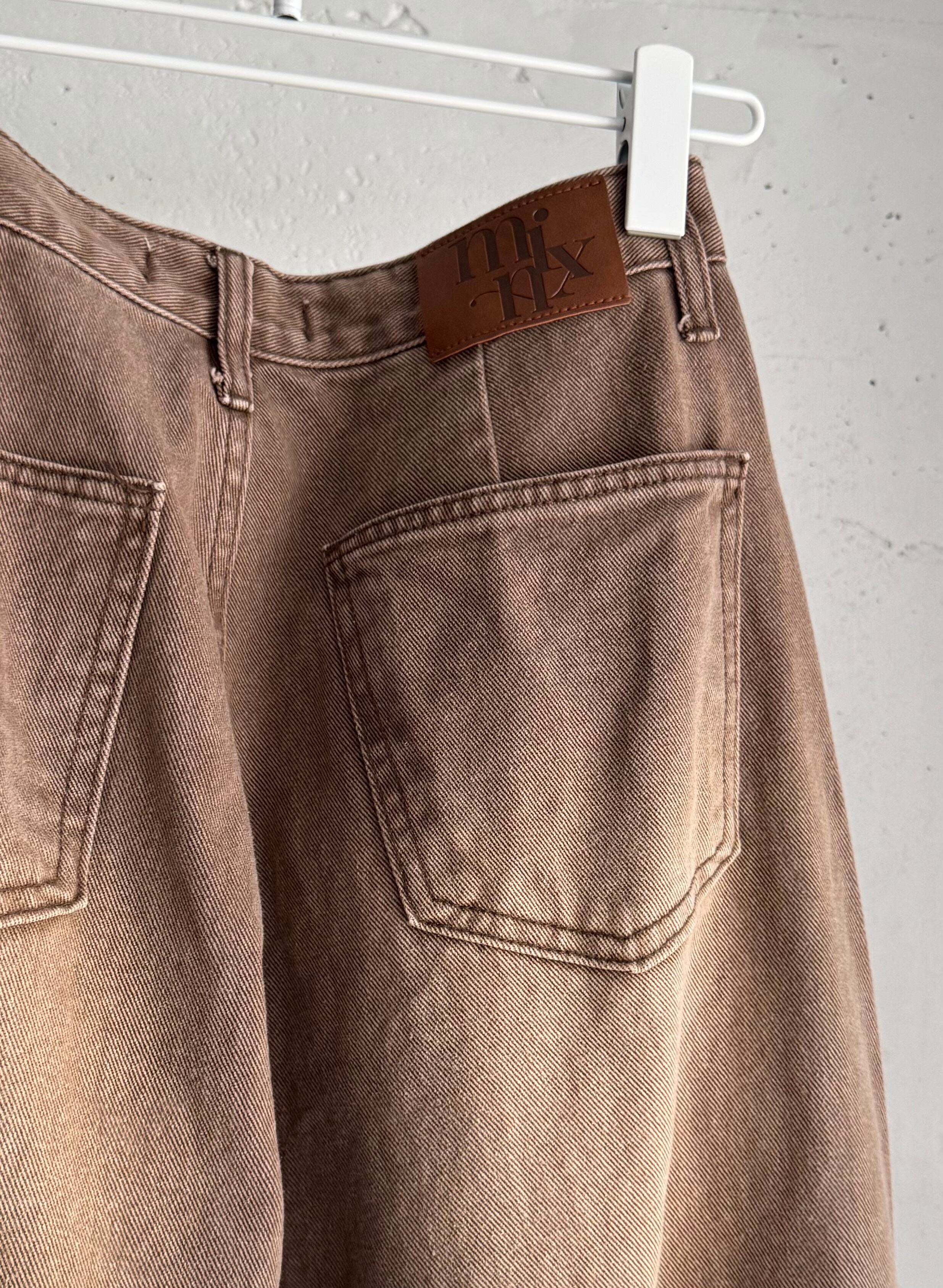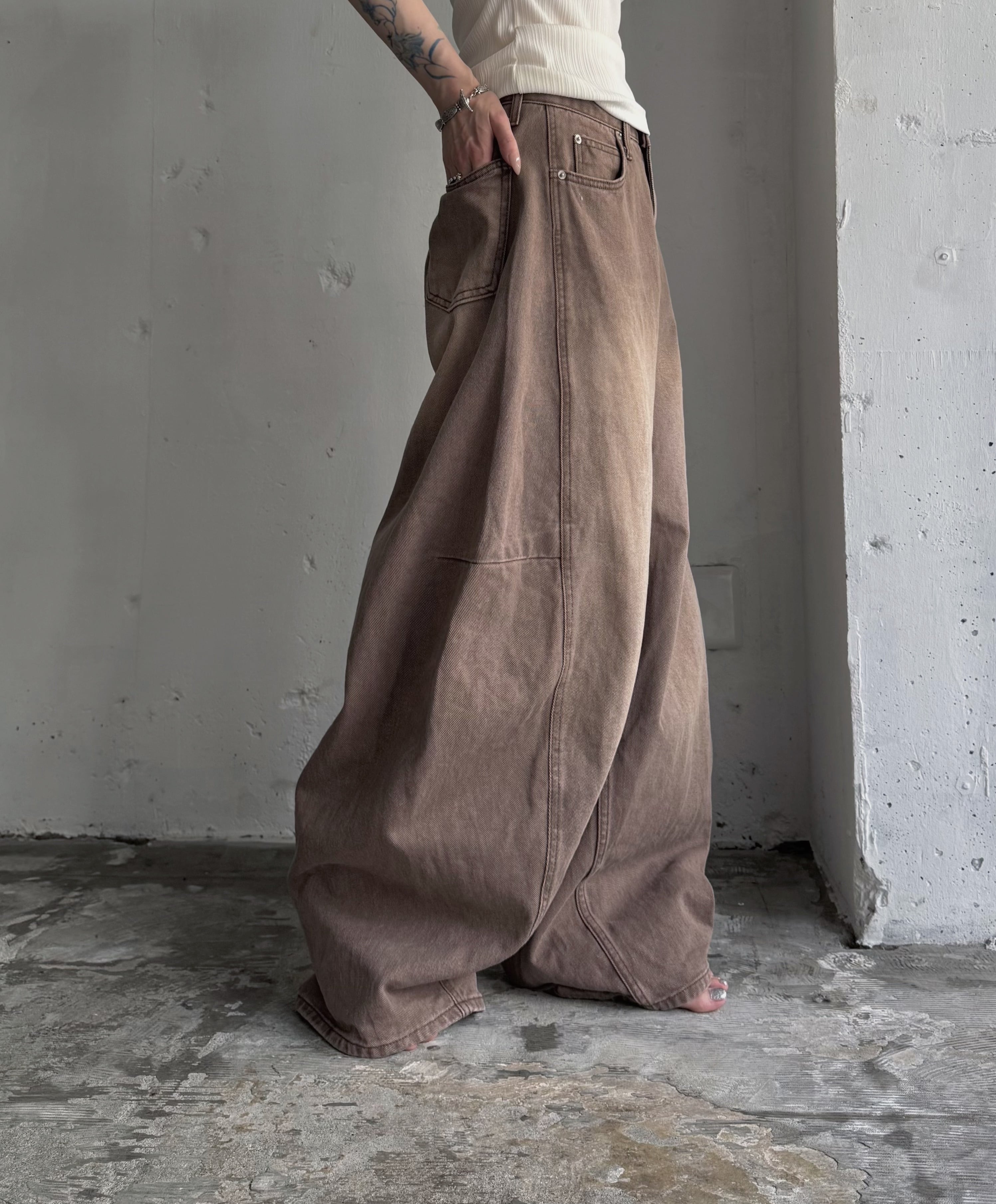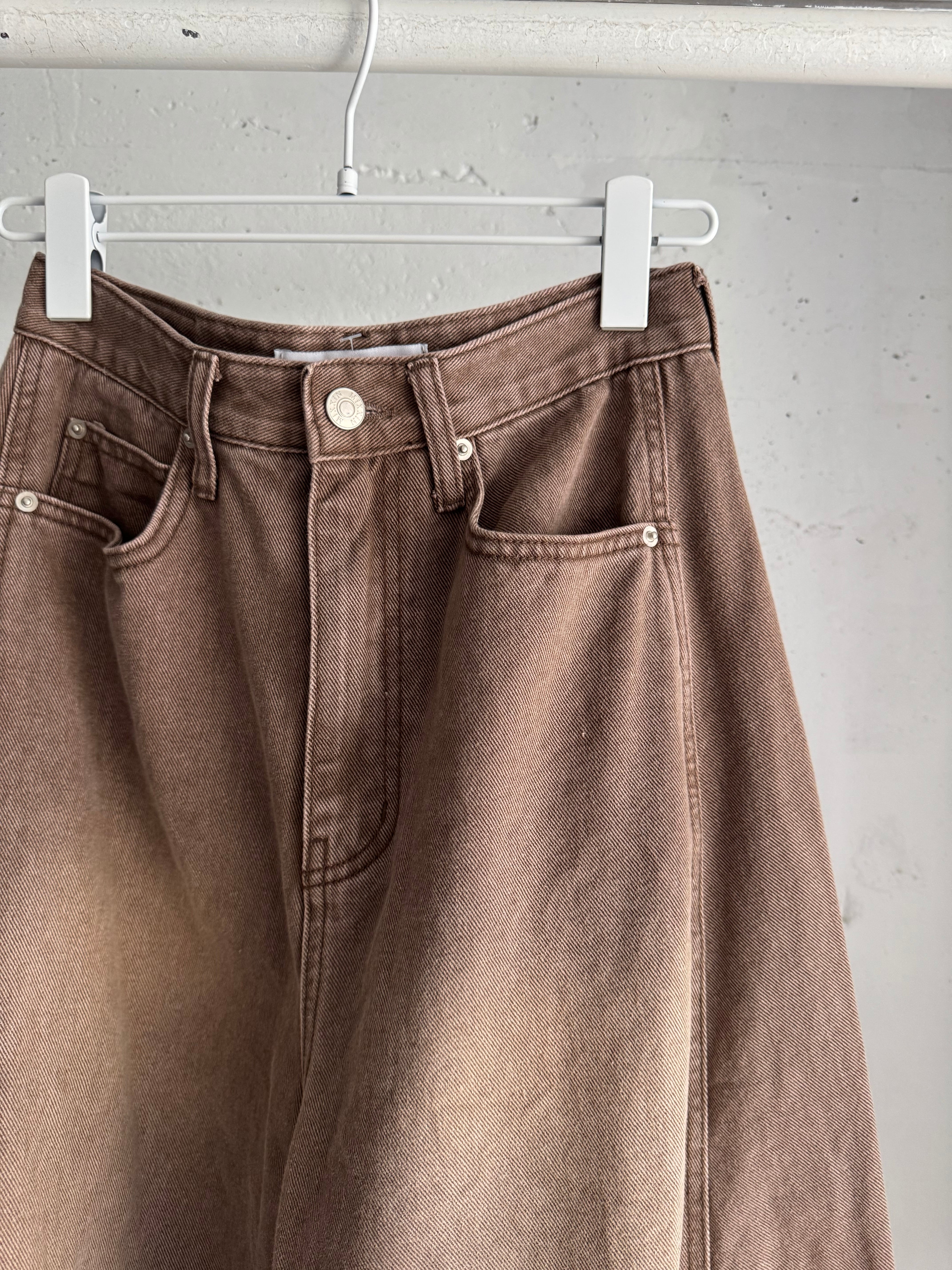 barrel leg brown denim pants