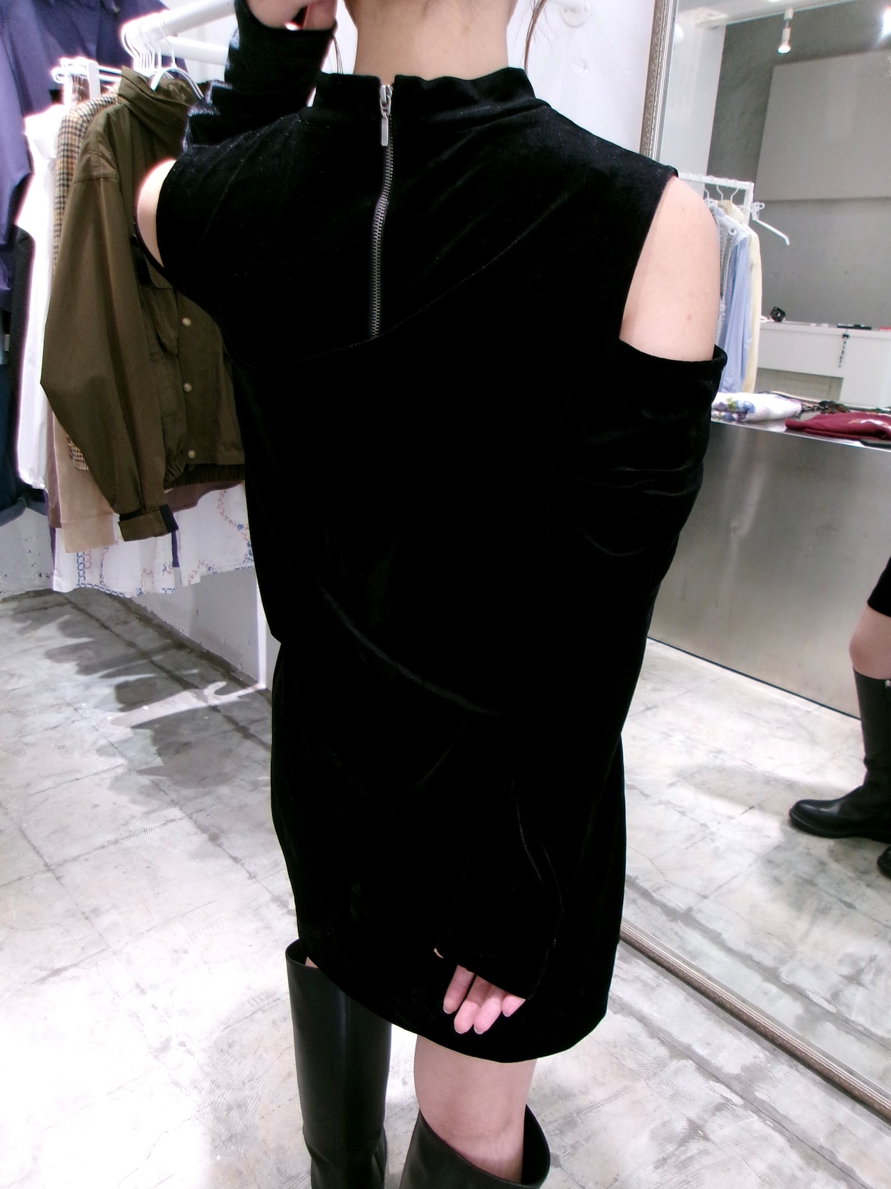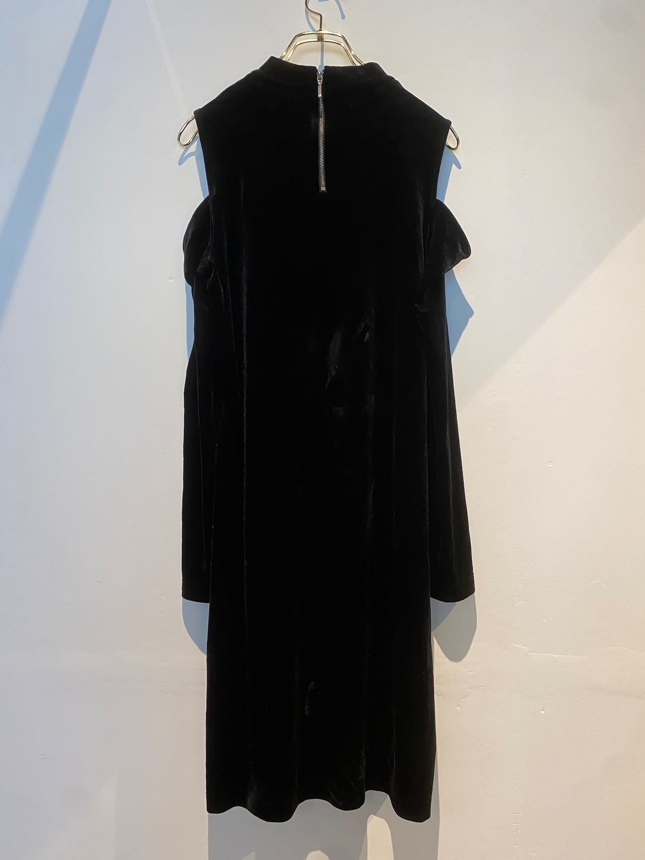 vintage velvet cold shoulder dress