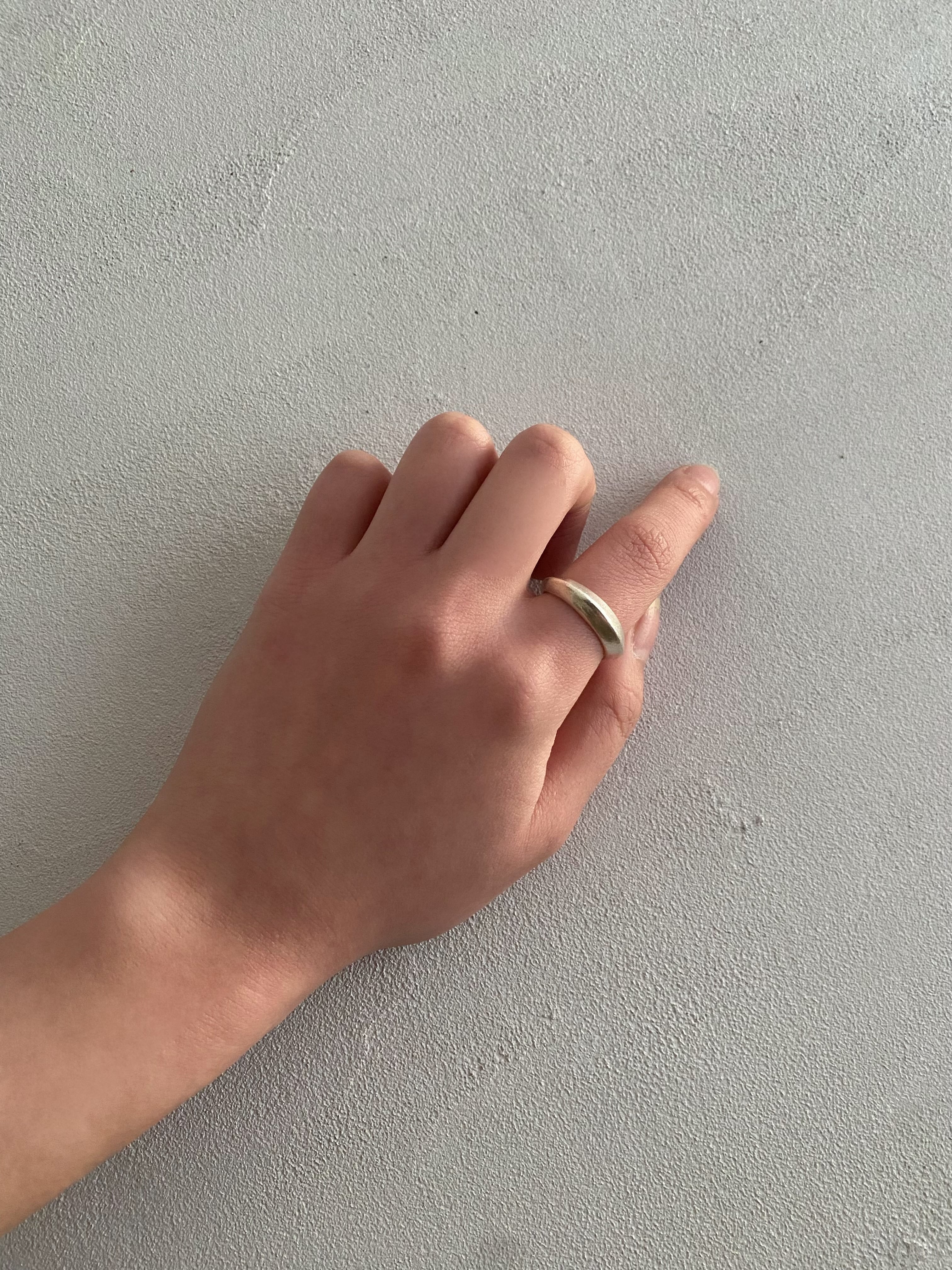 ミニマルな存在感が手もとをきれいに見せてくれる、シンプルなカレンシルバーリング。