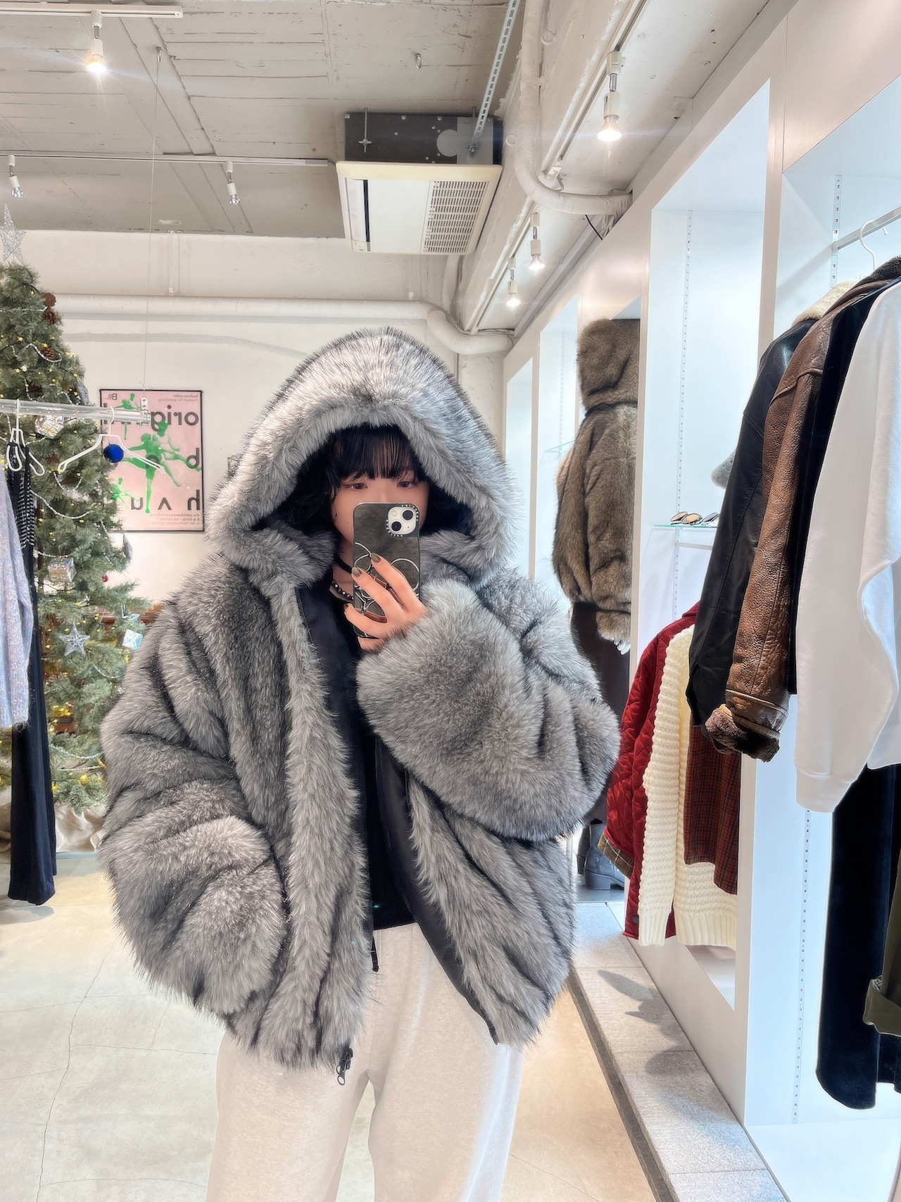 big silhouette fake fur jacket