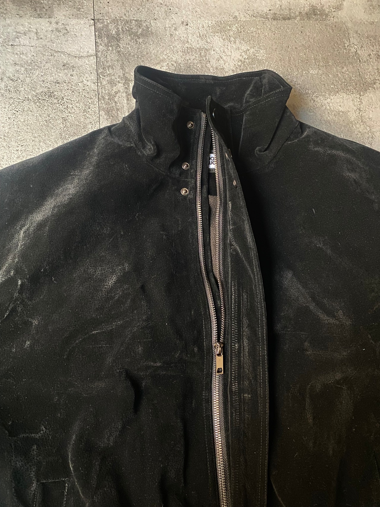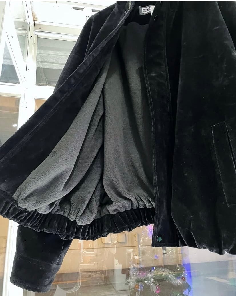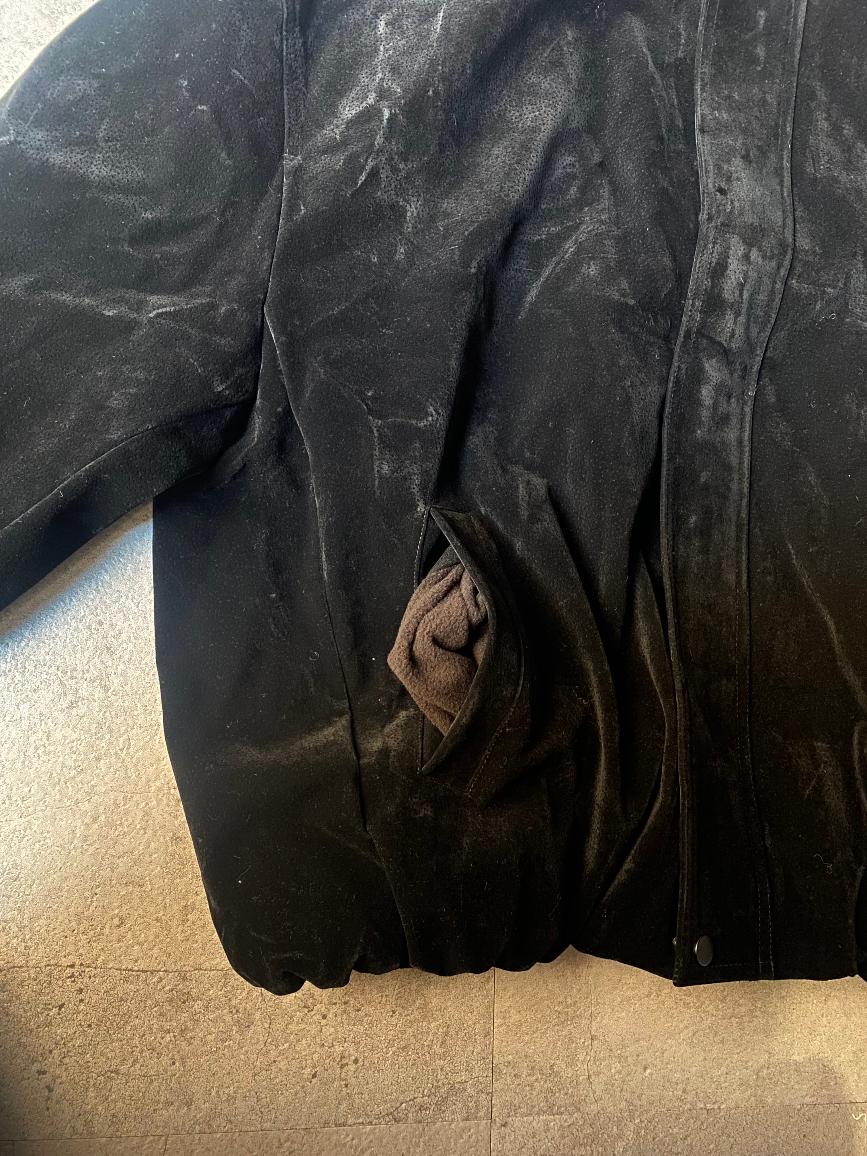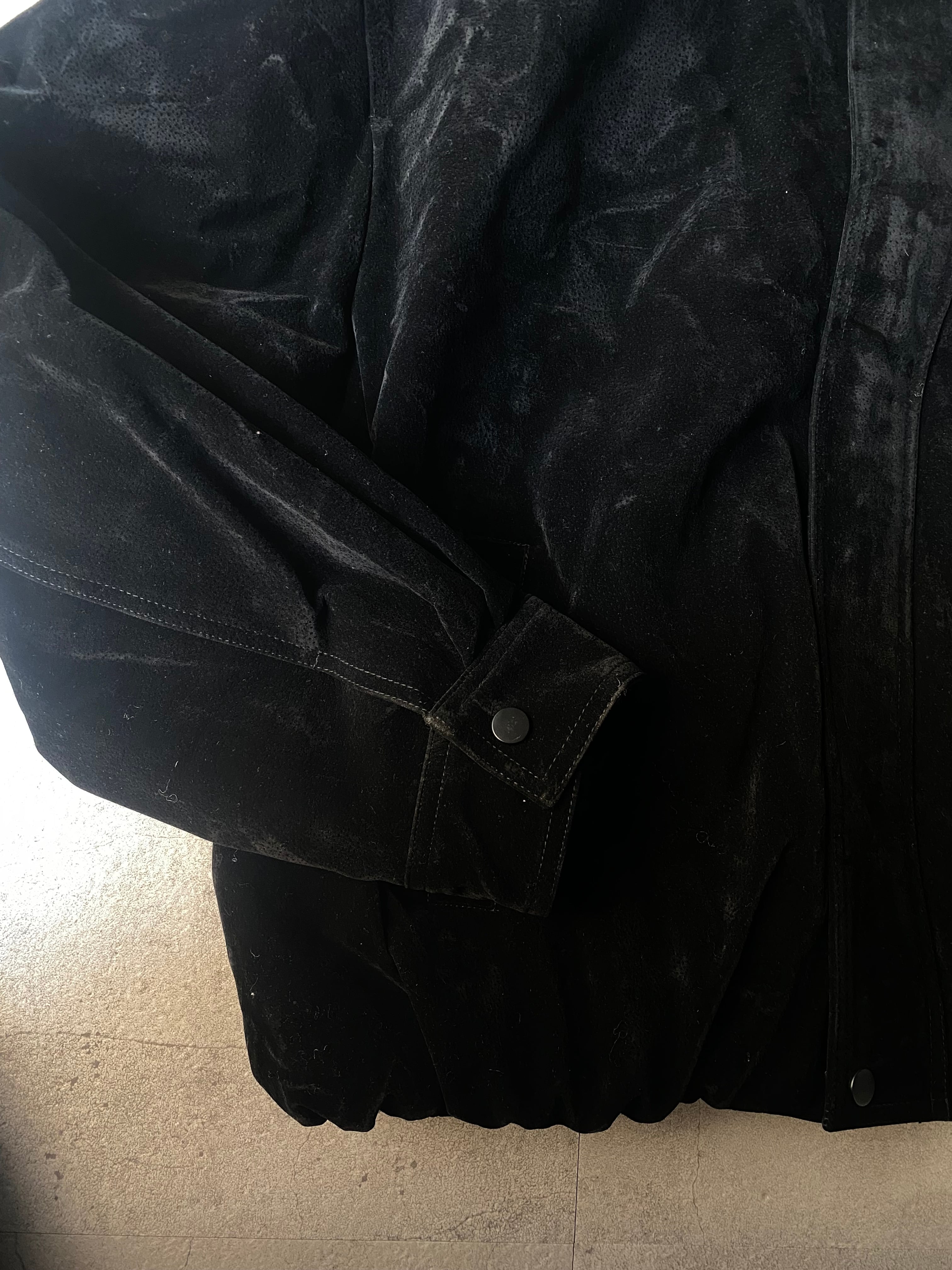 ※ この商品は生地の上に特殊フロッキー加工を施しております。クリーニングは専門の業者に相談してください。経年劣化により色落ちや表面剥がれする事があります。色移りする可能性がある為、着用などの際に淡色に触れないようご注意ください。