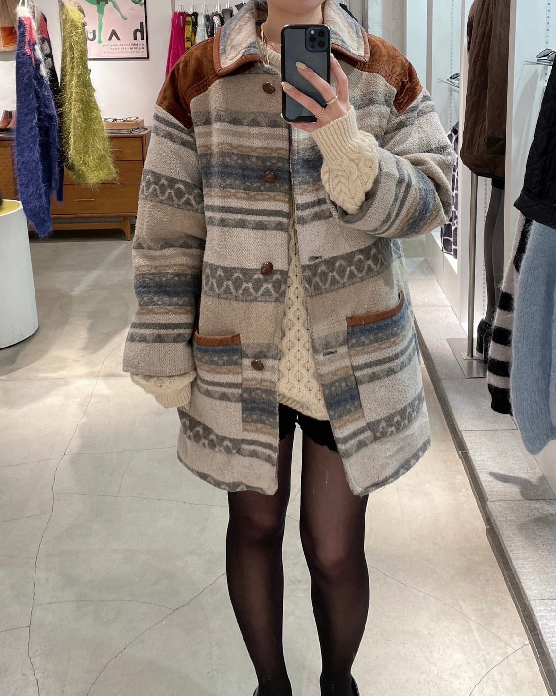 80s vintage wool blanket coat