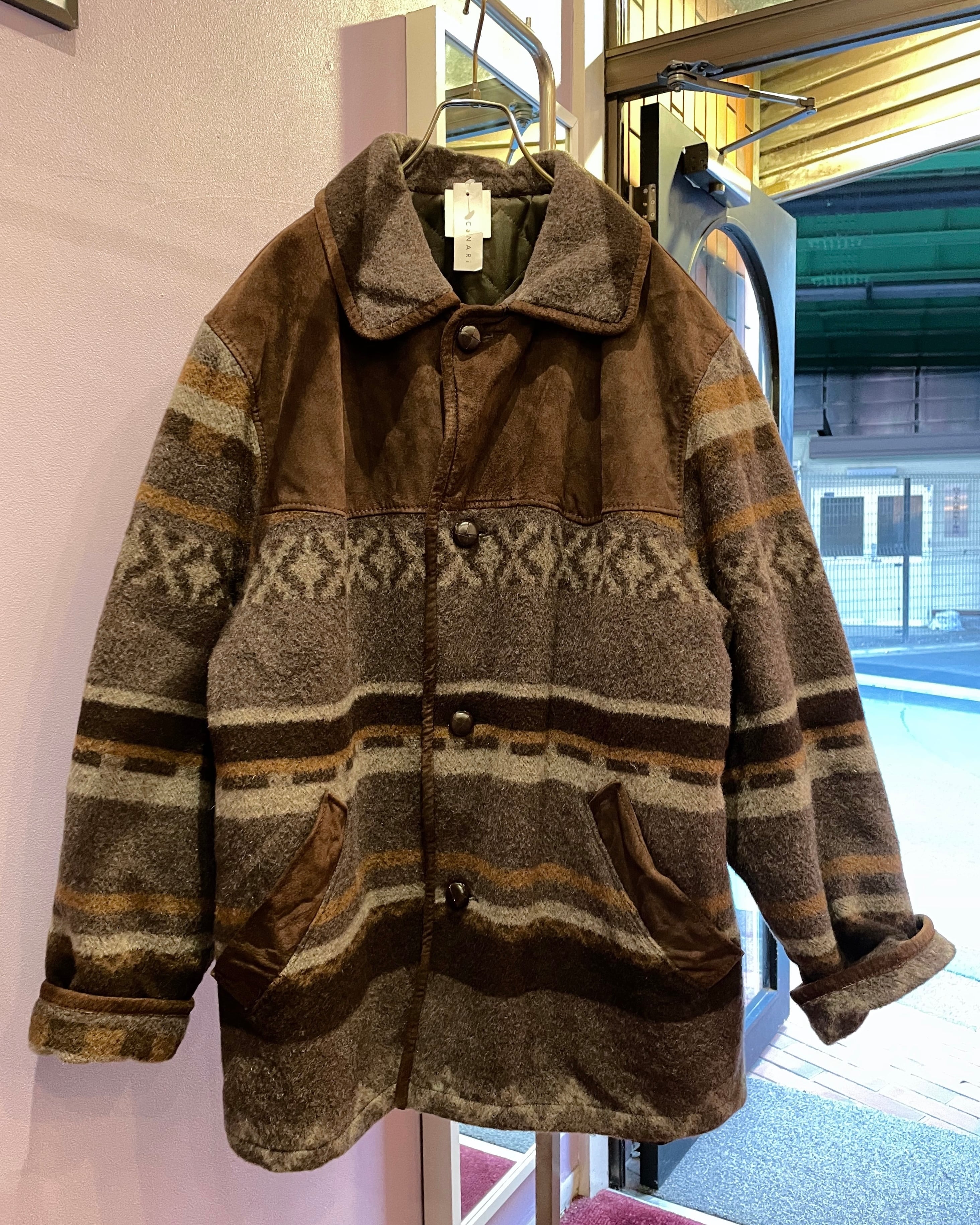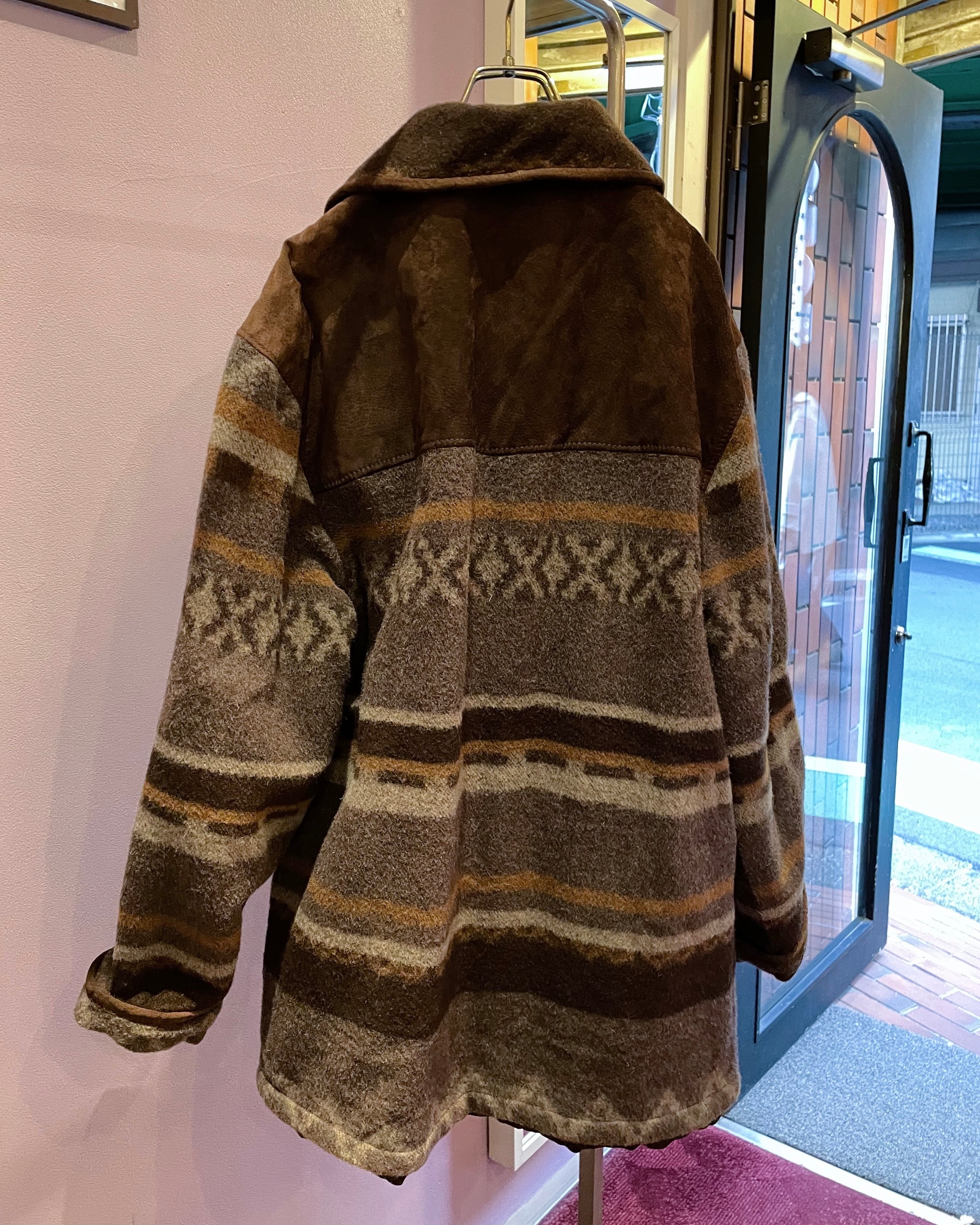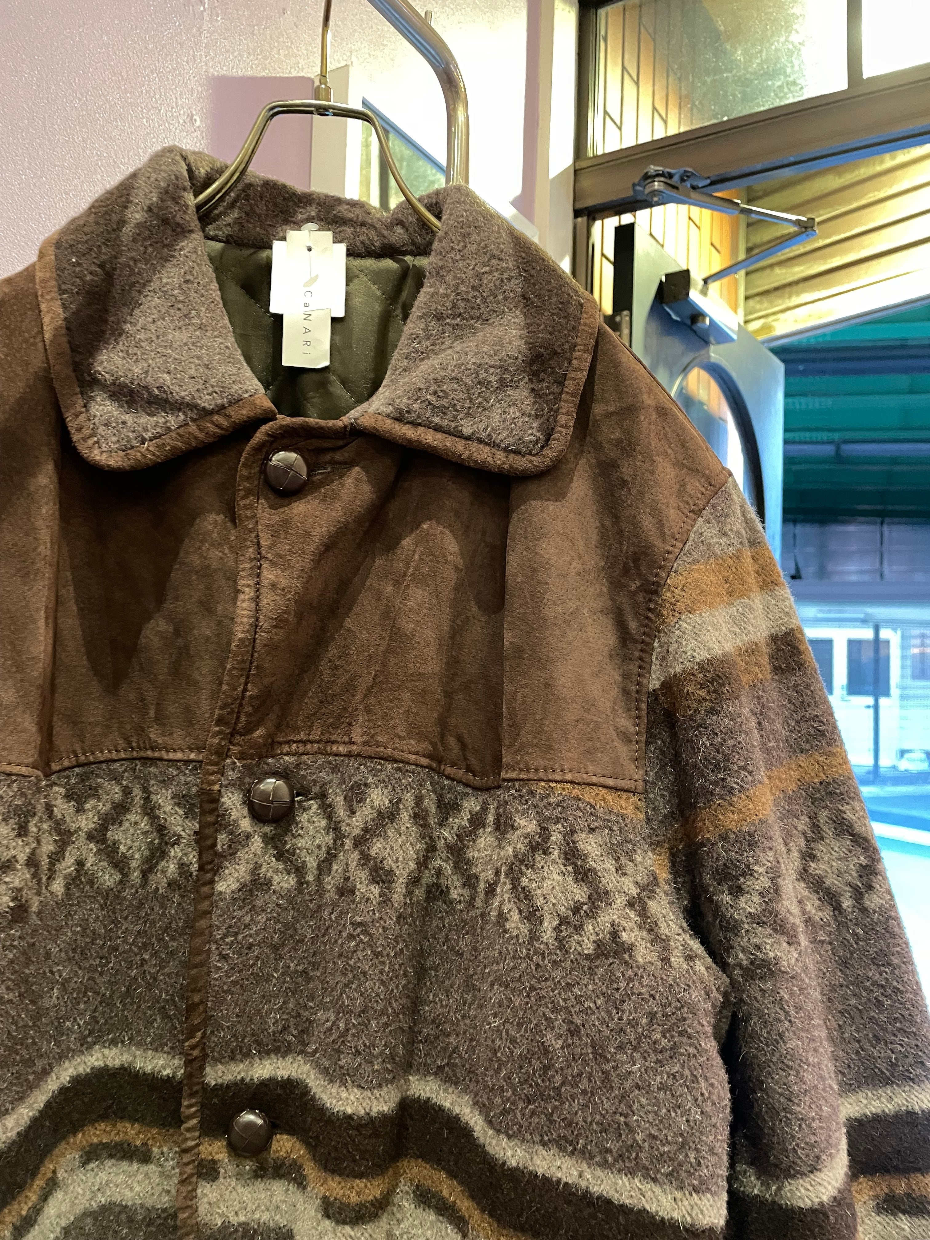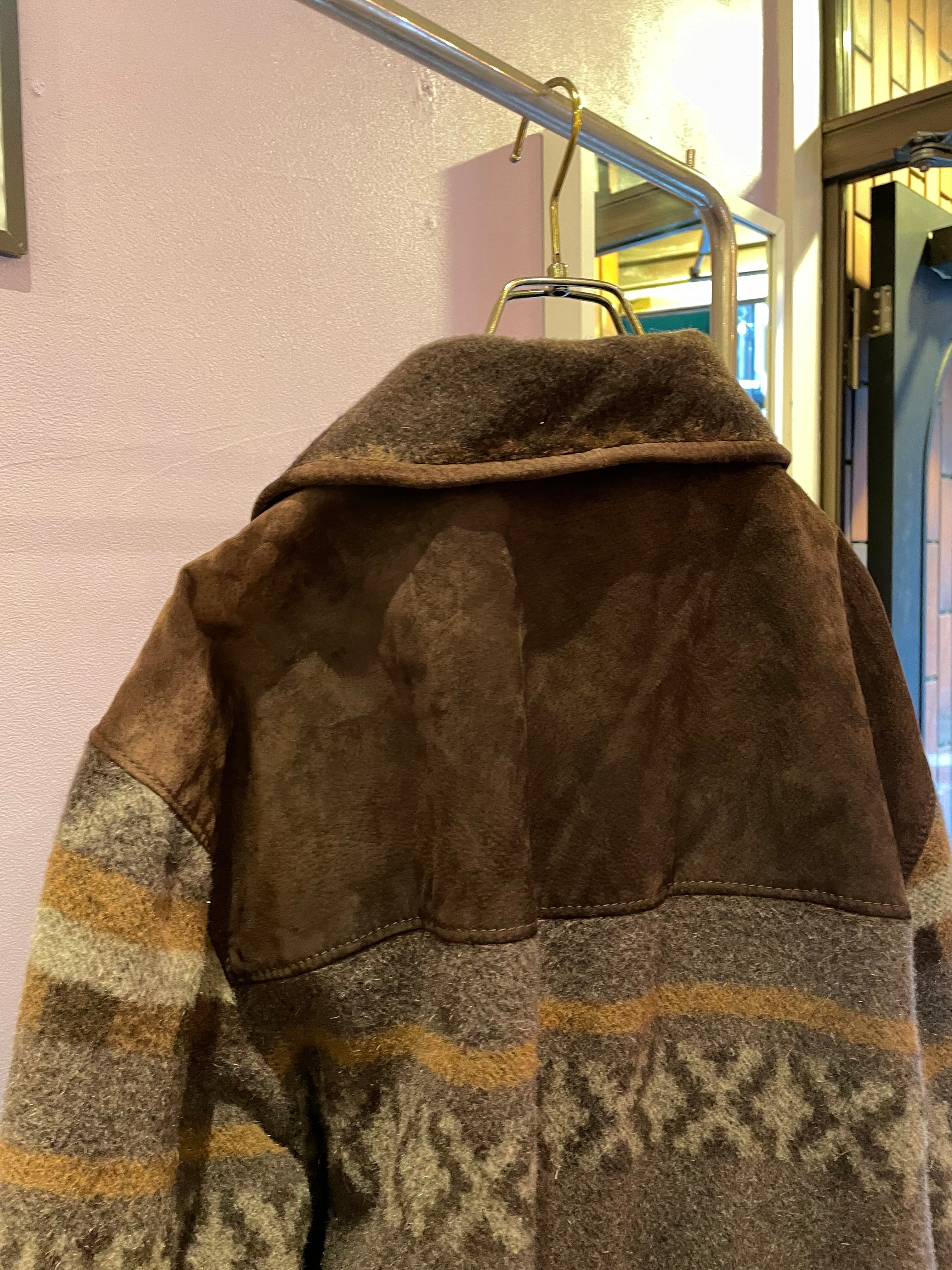 vintage wool×suède half coat
