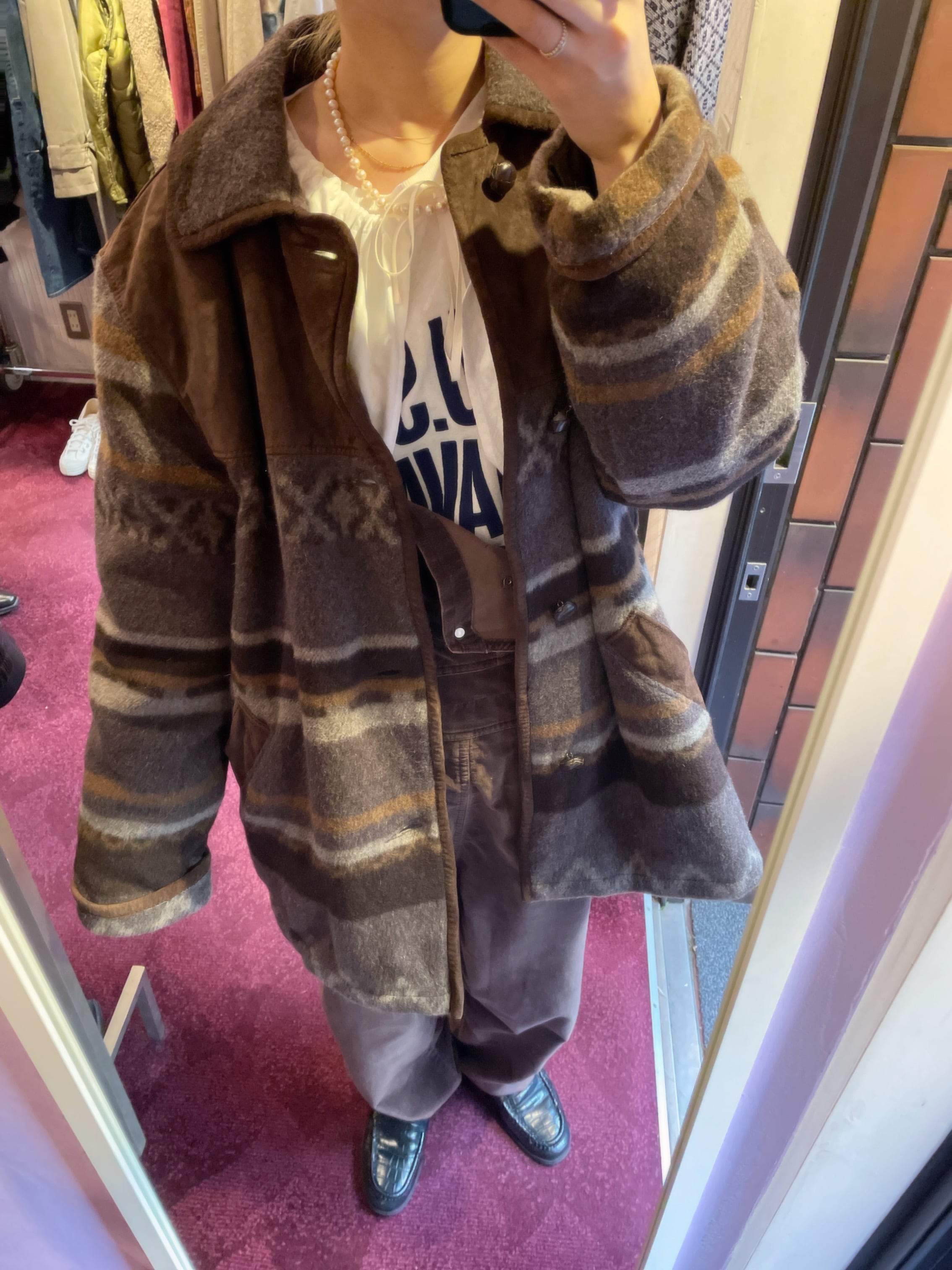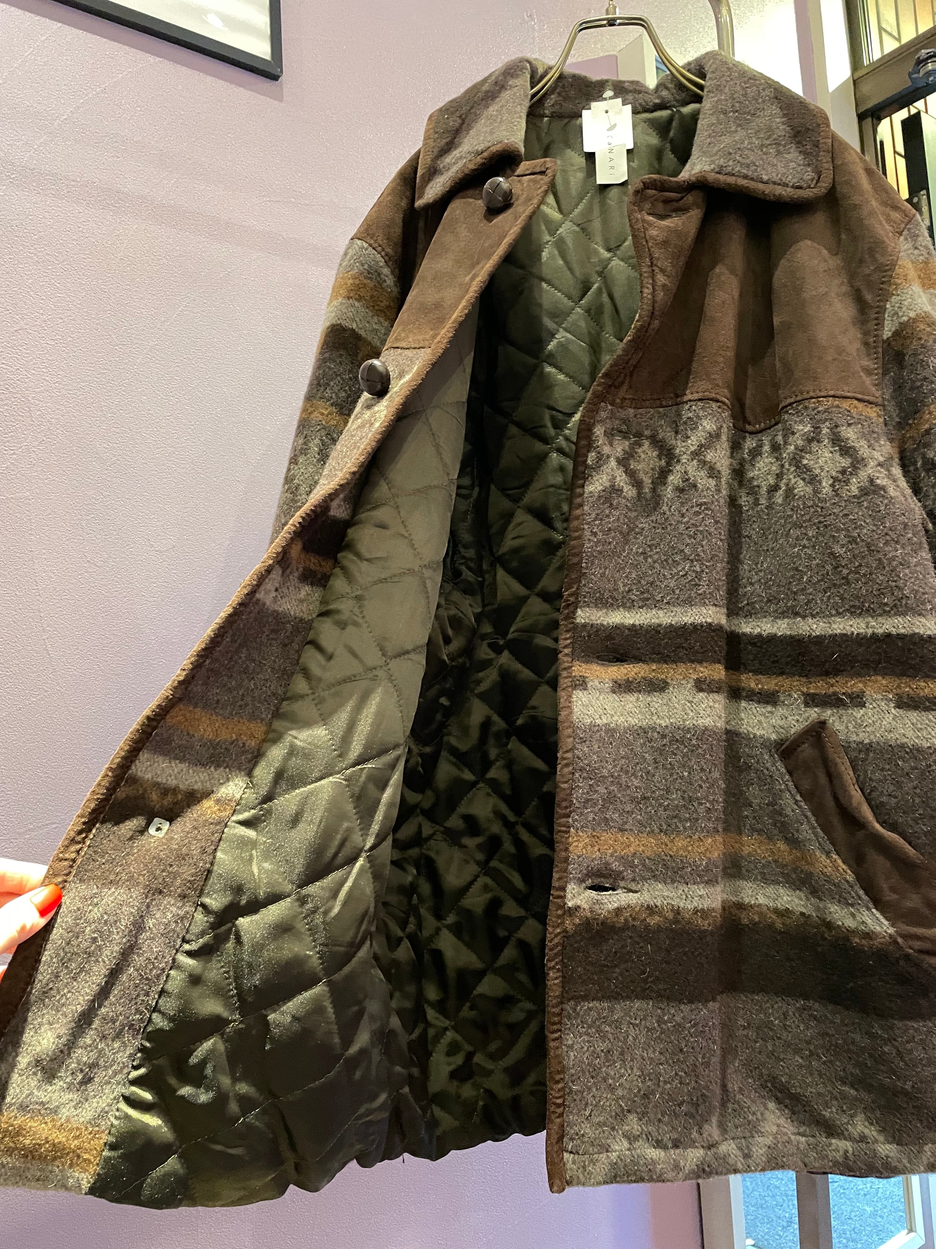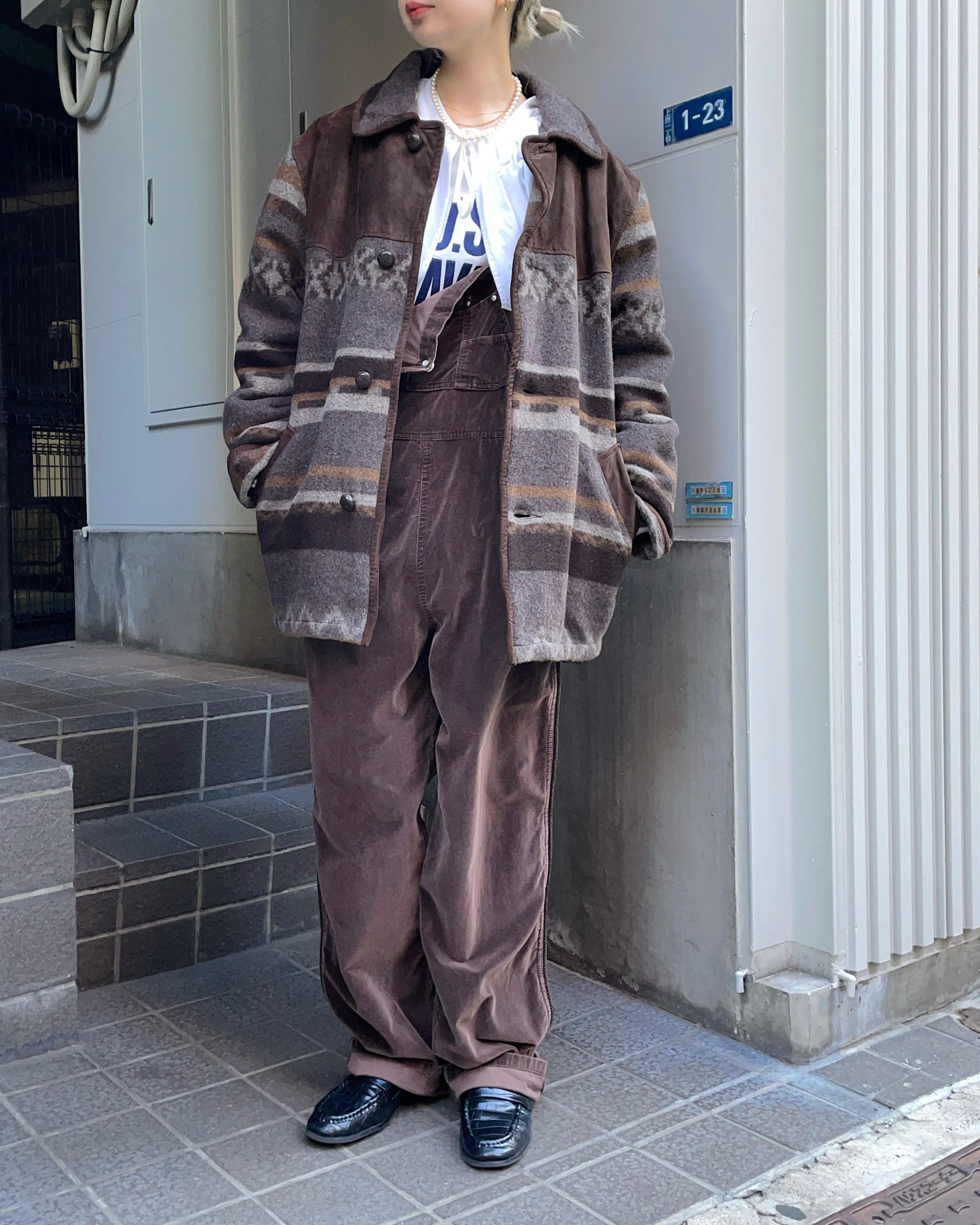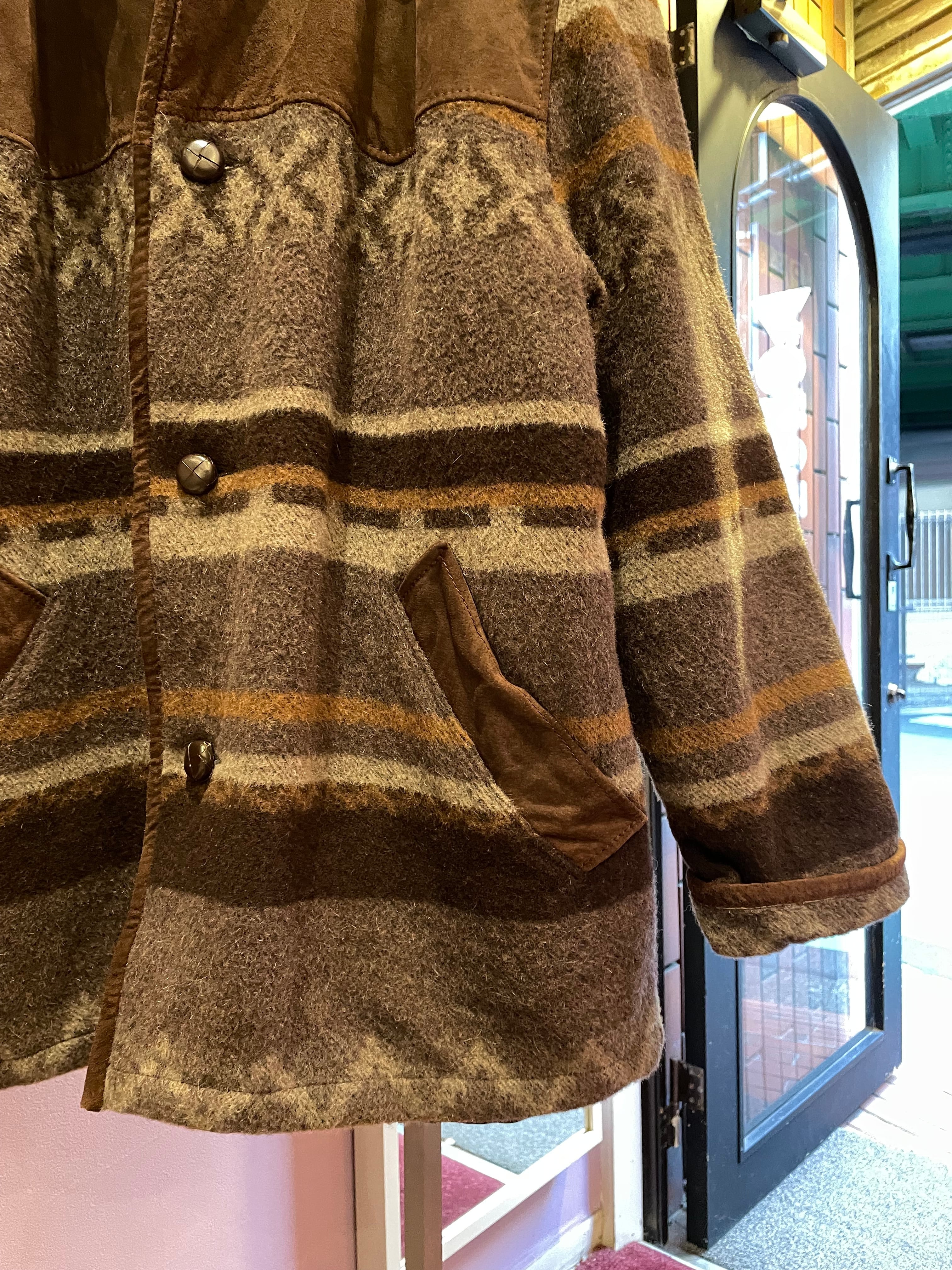 vintage wool×suède half coat