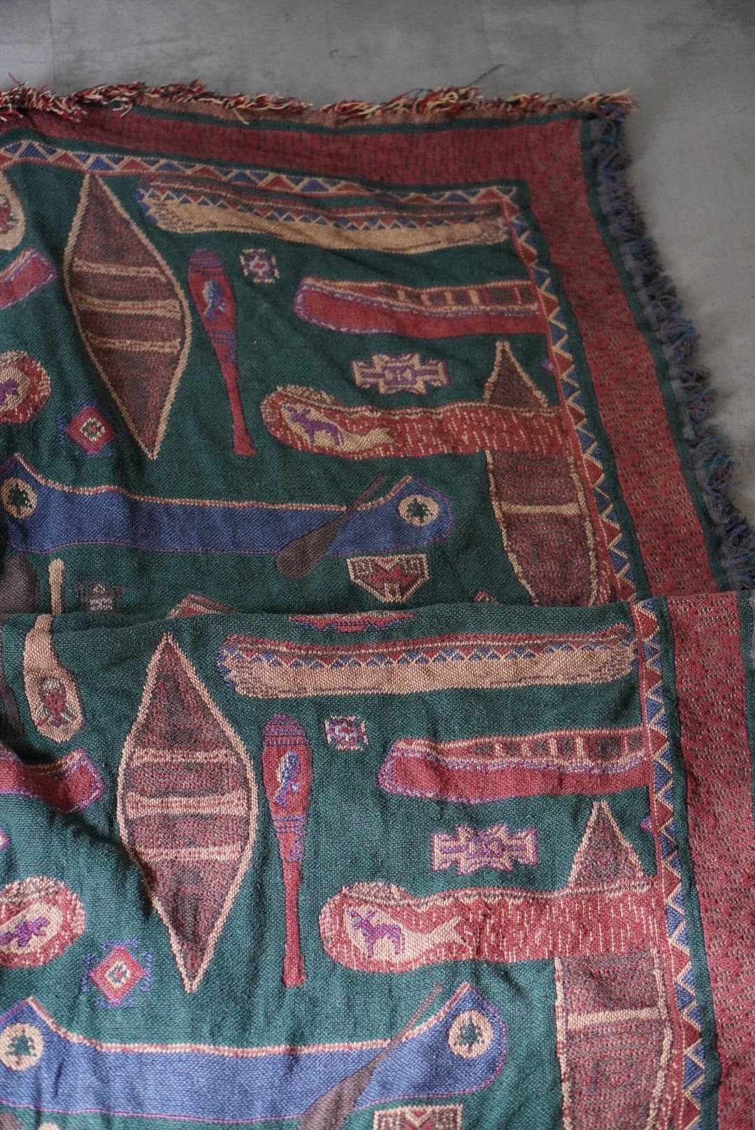 vintage rug / indian canoe pattern