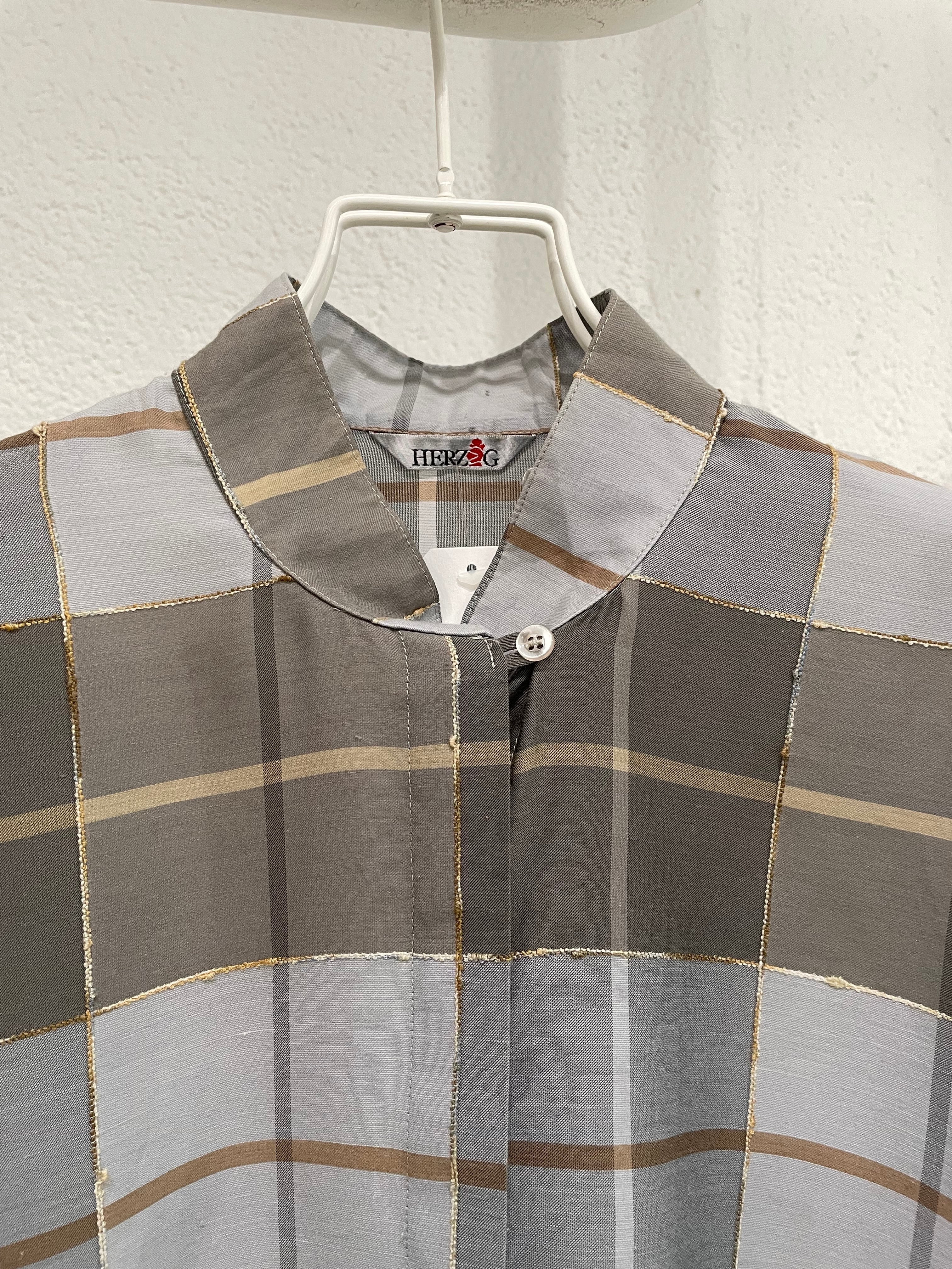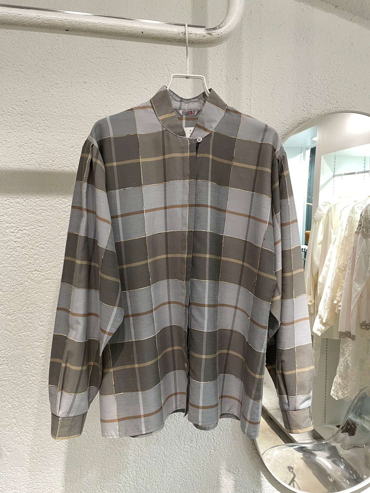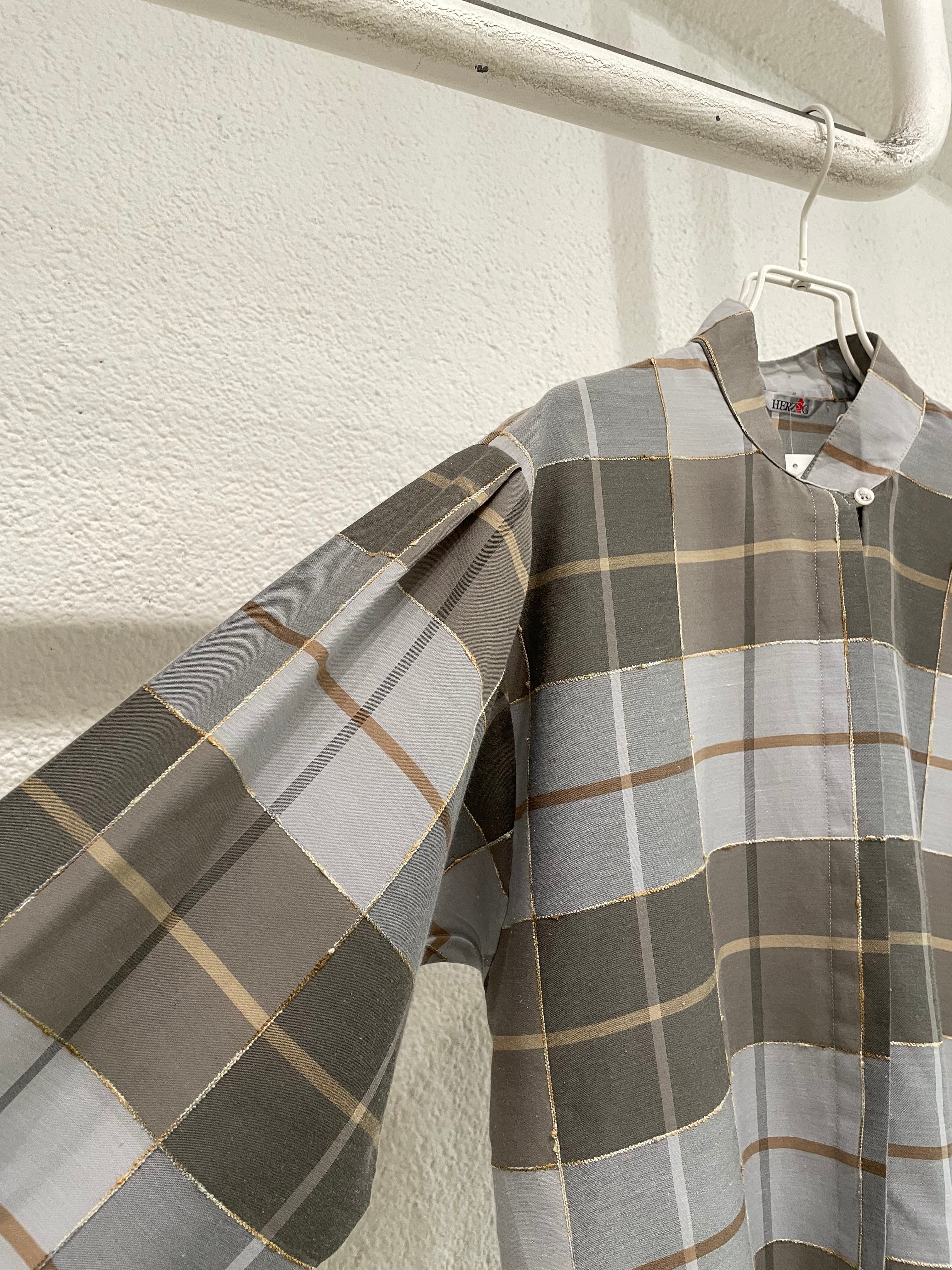 vintage check pattern stand collar blouse