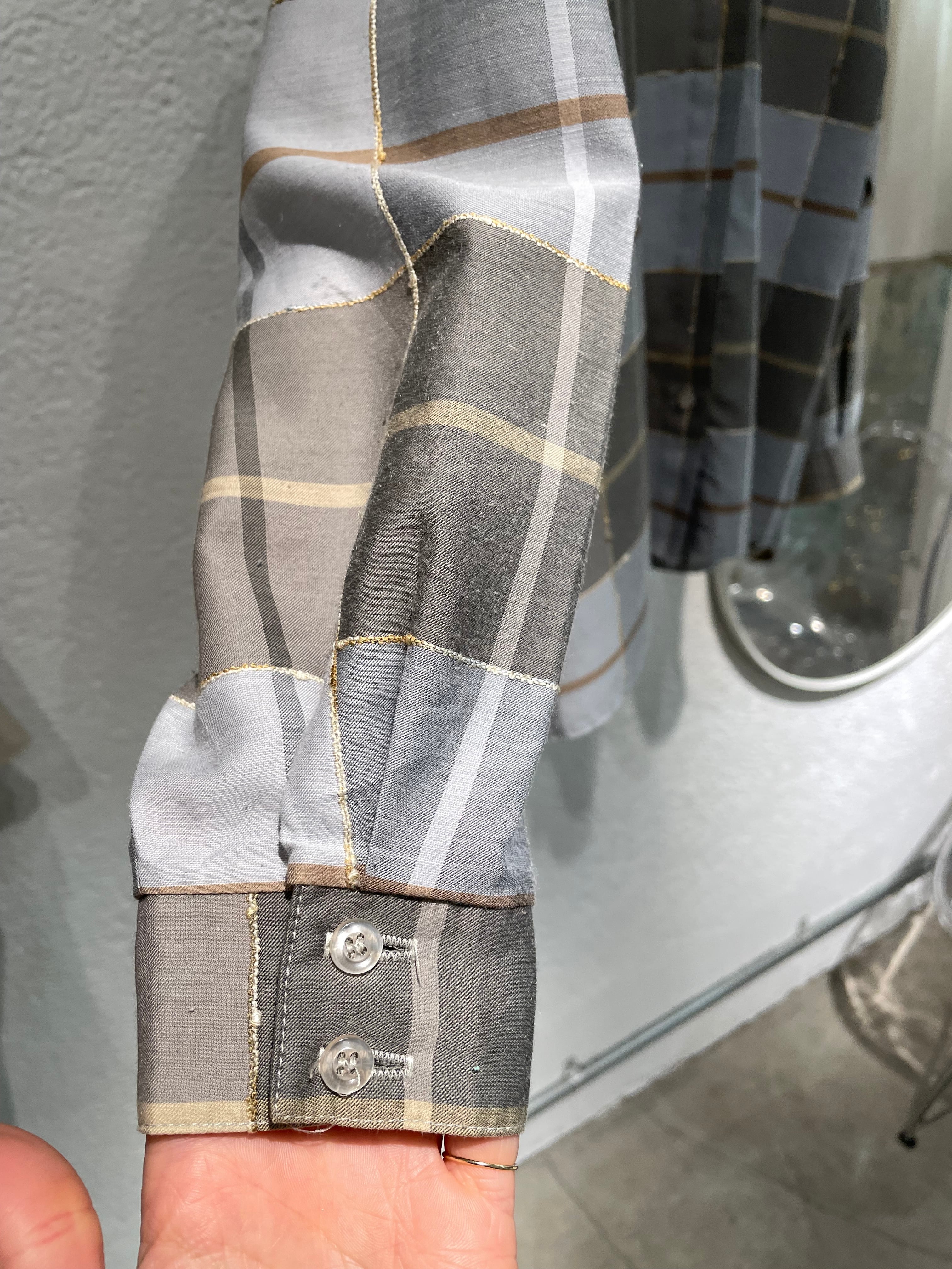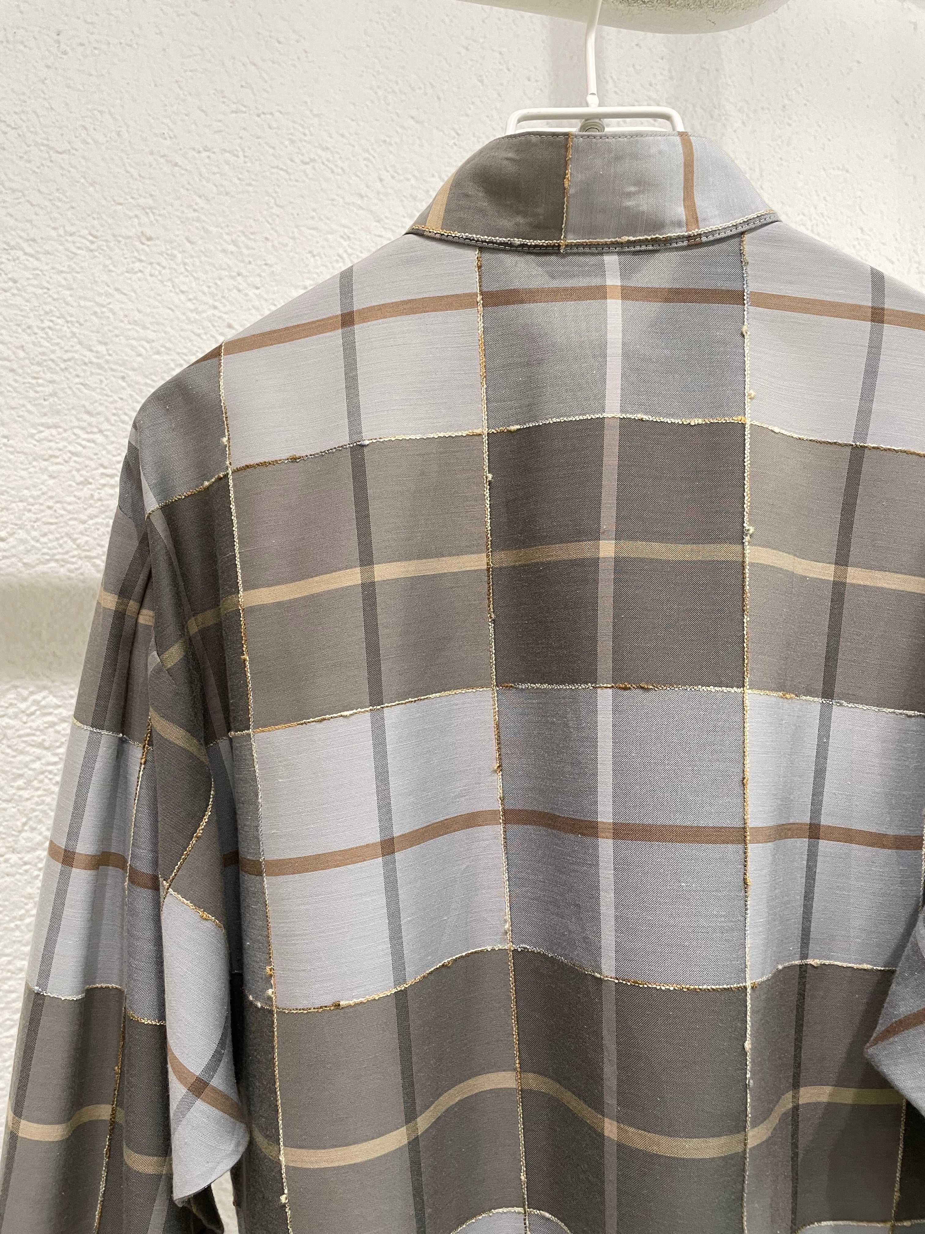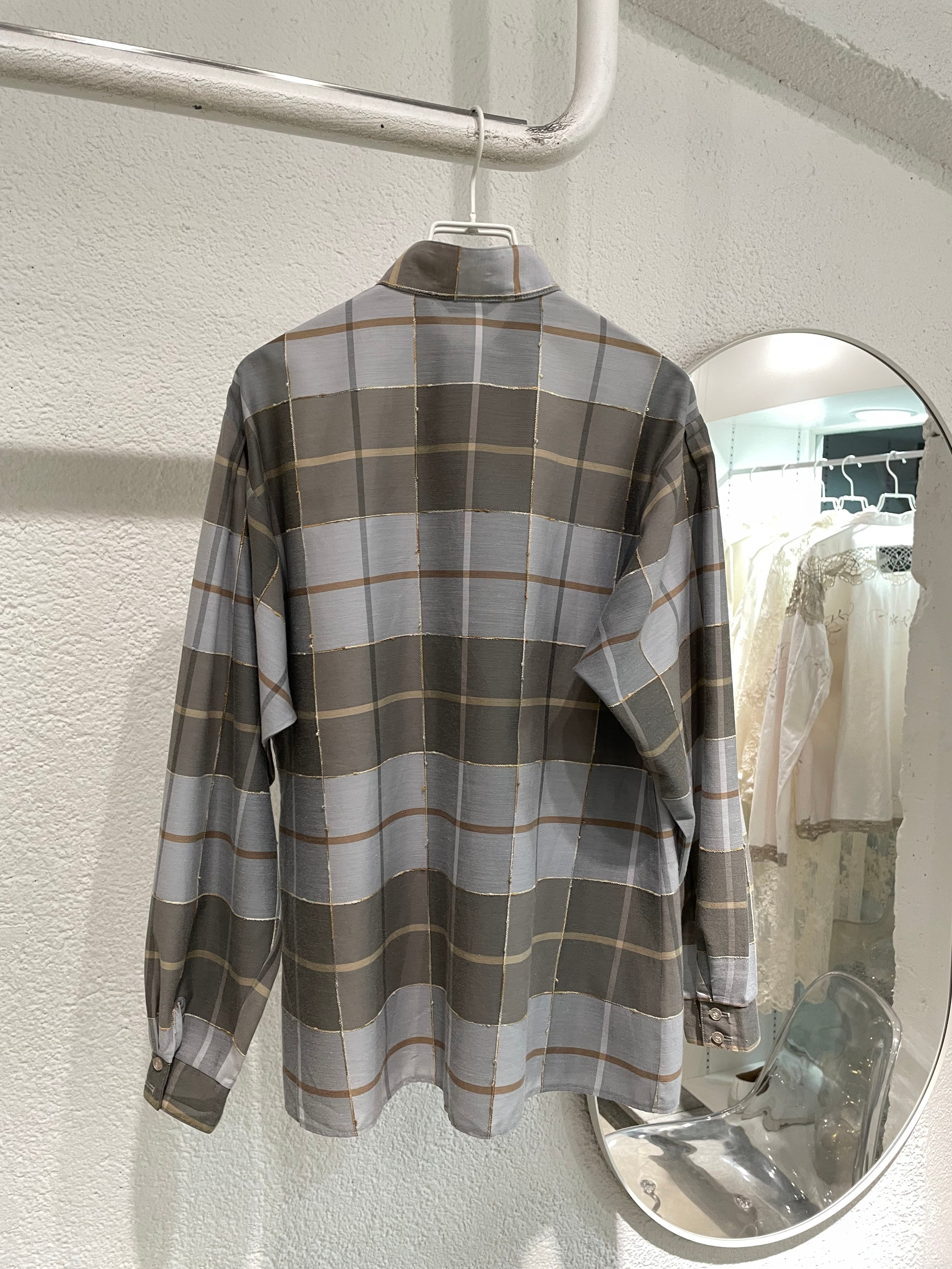 vintage check pattern stand collar blouse