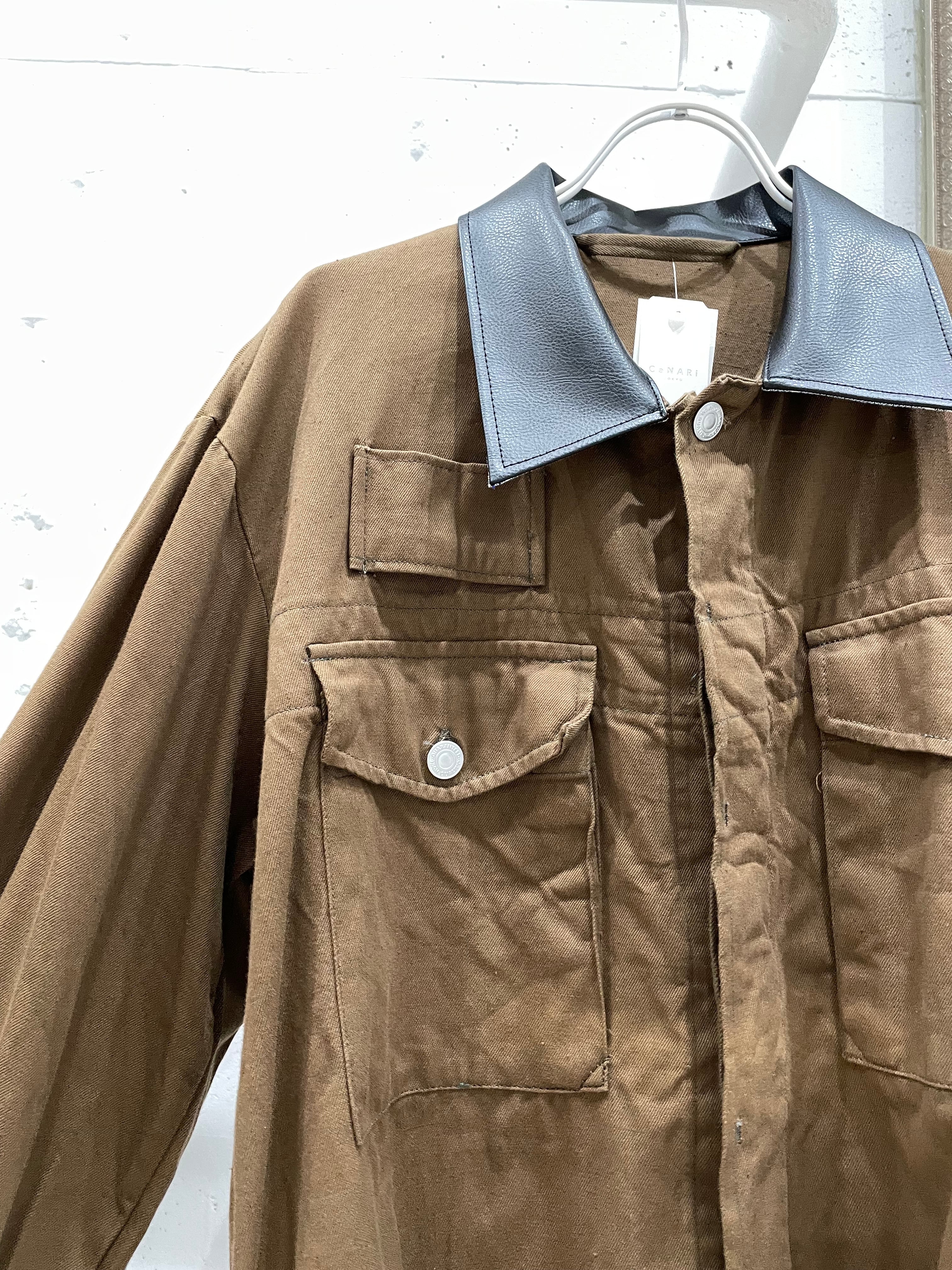 CaNARi remake czech army vegan leather collar jacket